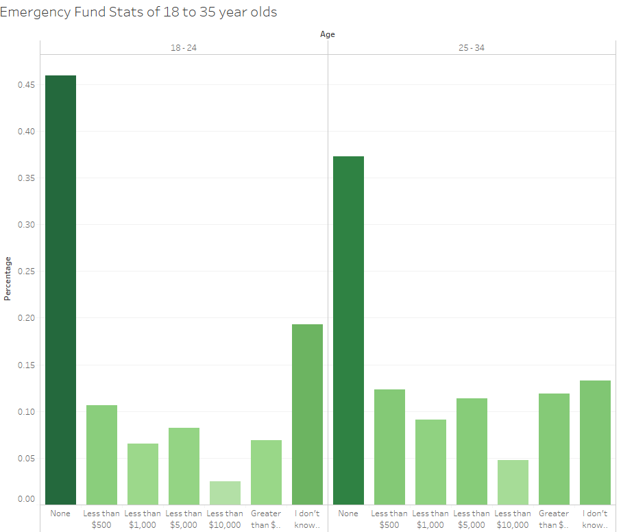 According to a recent study done by MyBankTracker, 56.5% of Americans aged between 18 and 24 have less than $500 set aside for a financial emergency. The scarier statistics that our survey found, is that 36.5 million Americans (about 14.5%) do not even know what an emergency fund is.